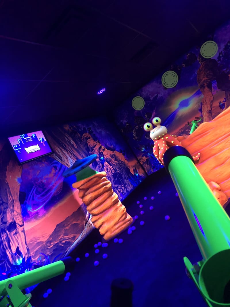 Hornbrook Hollow brings glowing, high-energy fun to Grande Prairie as the city’s only UV glow mini golf facility—an experience designed for all ages and abilities. Perfect for family gatherings, team-building events, date nights, and school field trips, the course features vibrant blacklight scenes and imaginative settings that make every game memorable. Visitors can also dive into the thrill of the Lost in Space–Balladium arena, where eight air cannons launch foam balls in an action-packed, space-themed battle that guarantees laughter and excitement.